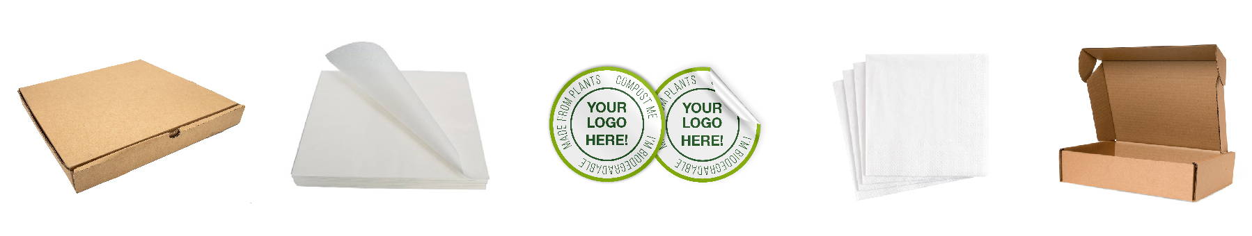 Pizza Boxes - Greaseproof Paper - Paper & Vinyl Stickers - Linen Serviettes - Self Locking Boxes