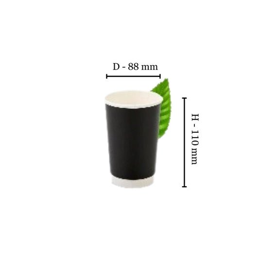 350ml Plain Black Double Wall Coffee Cup - PLA Lined (Pack of 25)