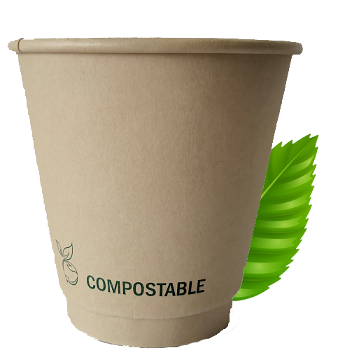 Double wall compostable Aqueous Cups are manufactured using a waterproof board lining. Repulpable with normal paper waste or home compostable.