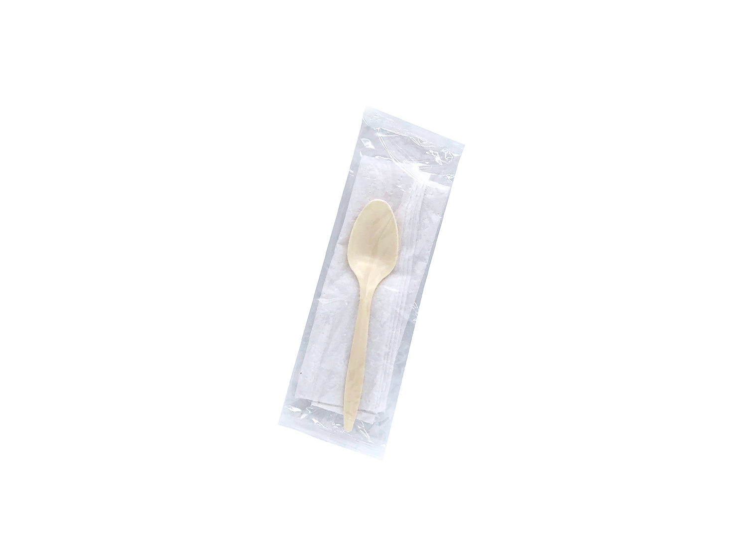 Got an event coming up and want to be green about it? Our Two in One Cornstarch cutlery set includes a Cornstarch Spoon and a Biodegradable Serviette. We strive to be sustainable in all areas, even down to our packaging, by using recycled materials. Our cutlery is made from 70% renewable resources and offers a cost effective sustainable alternative, whilst still giving the strength and stability of a conventional plastic utensil.All cornstarch products will breakdown in presence of other bioactive materials in a landfill, making them a practical, cost efficient, sustainable alternative.Our corn starch cutlery is excellent for hot foods (heat tolerance up to 120° C), and can be used in the microwave. Finally, this product has no effects on the flavours of the food (fewer indeed, we believe, than the non-renewable alternatives available).Compostable in a commercial composting facility .